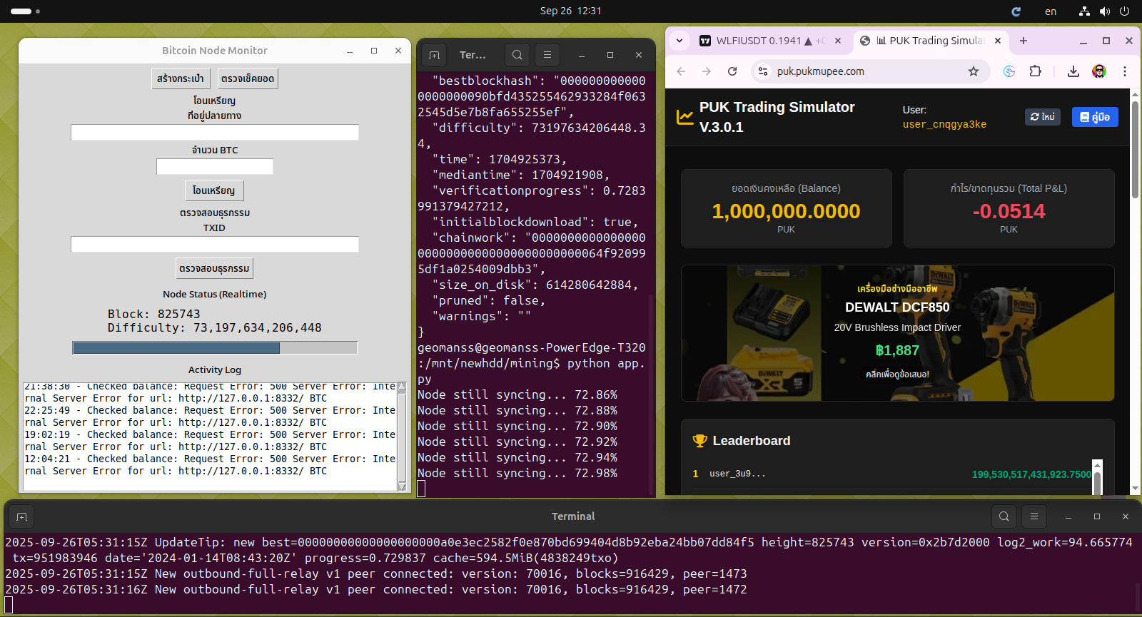 26 Sep 2025 05:33bitcoin core + PUK trading simulator + LND