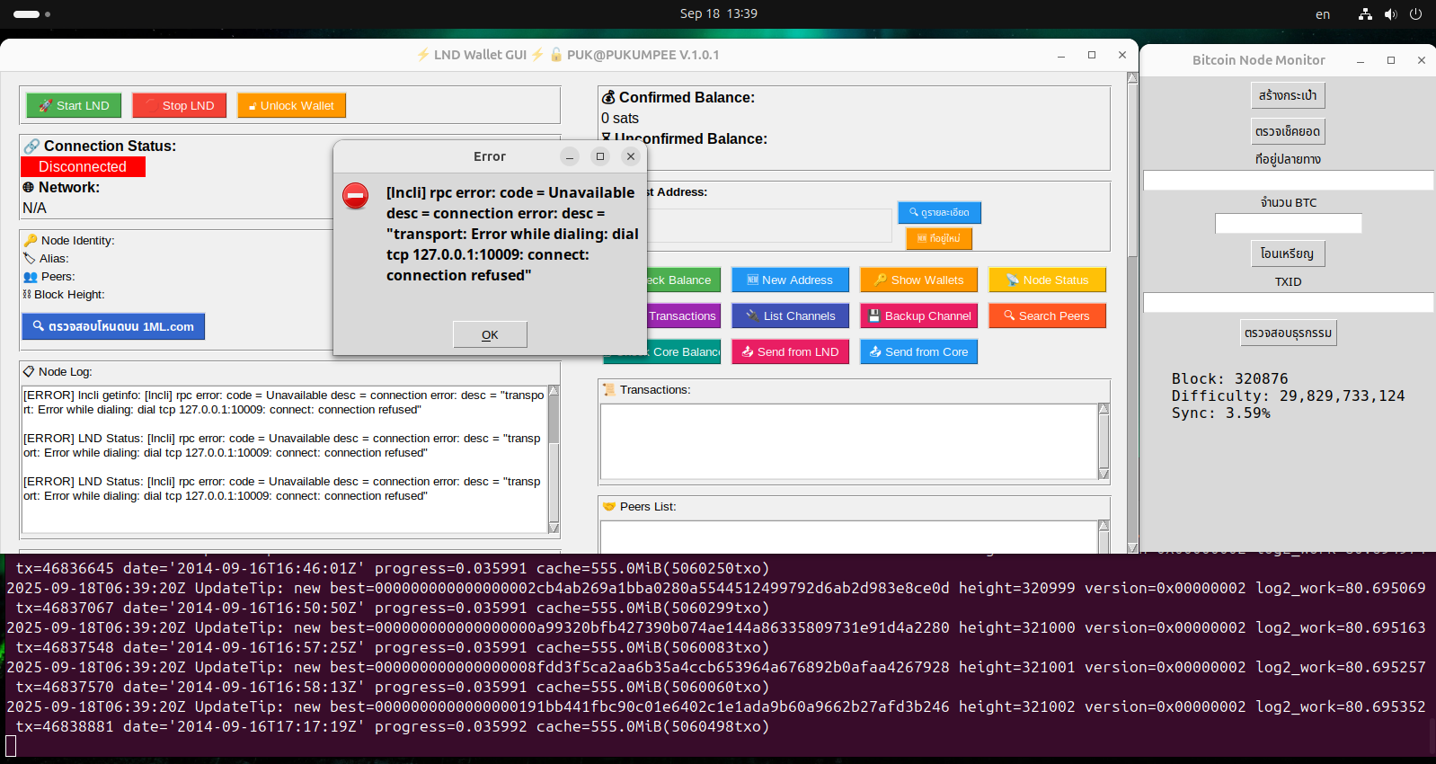 19 Sep 2025 01:13สรุปขั้นตอน ตั้งค่า Bitcoin Core ให้รันอัตโนมัติเมื่อเปิดเครื่อง บน Lin✅ ขั้นตอนทั้งหมด 1. ติดตั้ง Bitcoin Core ux (systemd) tar -xvf bitcoin-27.2-x86_64-linux-gnu.tar.gz sudo install -m 0755 -o root -g root -t /usr/local/bin bitcoin-27.2/bin/* 2. สร้างโฟลเดอร์เก็บข้อมูล mkdir -p /mnt/newhdd/bitcoin 3. ตั้งค่า config ไฟล์: /mnt/newhdd/bitcoin/bitcoin.conf server=1 daemon=0 # ❌ ปิด daemon mode ให้ systemd ควบคุม txindex=1 rpcuser=yourrpcuser rpcpassword=yourrpcpass datadir=/mnt/newhdd/bitcoin 4. สร้าง systemd service ไฟล์: /etc/systemd/system/bitcoind.service [Unit] Description=Bitcoin daemon After=network.target [Service] ExecStart=/usr/local/bin/bitcoind -conf=/mnt/newhdd/bitcoin/bitcoin.conf -datadir=/mnt/newhdd/bitcoin ExecStop=/usr/local/bin/bitcoin-cli -conf=/mnt/newhdd/bitcoin/bitcoin.conf -datadir=/mnt/newhdd/bitcoin stop Restart=always TimeoutStopSec=90s User=geomanss Group=geomanss Type=simple [Install] WantedBy=multi-user.target
