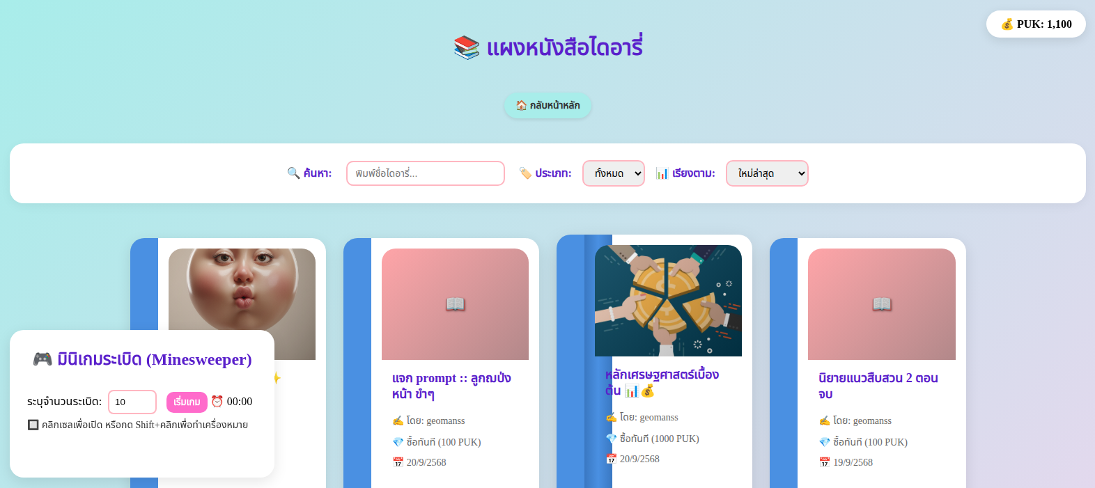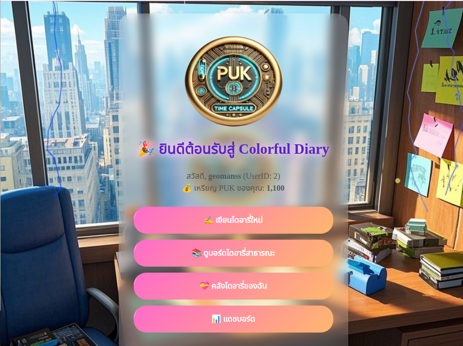 20 Sep 2025 01:37📄 หน้า: ℹ️ เกี่ยวกับระบบ Colorful Diary 🌈 “ทุกความรู้สึก...สามารถกลายเป็นของมีค่าได้” 🎯 ยินดีต้อนรับสู่ Colorful Diary! Colorful Diary คือแพลตฟอร์มดิจิทัลที่ผสมผสานระหว่าง “การเขียนไดอารี่” + “ตลาดสะสม” + “ระบบเกม” — ออกแบบมาเพื่อให้คุณ: ✍️ เขียน ความรู้สึก ความทรงจำ หรือเรื่องราวในแบบของคุณ 🛒 ขายหรือประมูล ไดอารี่ของคุณให้ผู้อื่น 💰 สะสม ไดอารี่ที่คุณชื่นชอบ — เหมือนสะสมของมีค่า 📜 ติดตามประวัติ การเป็นเจ้าของแบบบล็อกเชน — ใครเขียน ใครซื้อ ผ่านมือใครมาบ้าง 🎮 สนุกไปกับ มินิเกมและระบบ Achievement 🧩 ฟีเจอร์หลักของระบบ 1. ✍️ เขียนไดอารี่อย่างอิสระ ใช้ Text Editor ครบเครื่อง — ตัวหนา ตัวเอียง หัวข้อ แทรกรูปภาพ — ระบบจะดึงรูปแรกมาเป็น “หน้าปกหนังสือ” เลือกธีมสีสันสดใส — ให้ไดอารี่ของคุณมีเอกลักษณ์ 2. 🛒 ตลาดซื้อขายและประมูล ตั้งค่า “เผยแพร่สาธารณะ” → ปรากฏบนบอร์ดใหญ่ เลือก “ซื้อทันที” หรือ “ประมูล” — พร้อมตั้งราคา ซื้อไดอารี่ → เจ้าของเดิมจะ “เสียของไป” — ของจะไปอยู่กับคุณเท่านั้น นำไดอารี่ที่ซื้อมา “ขายต่อ” ได้ — สร้างมูลค่าเพิ่ม! 3. 💰 สกุลเงินในระบบ: PUK สมัครใหม่ → รับทันที 1,000 PUK ใช้ PUK ในการซื้อ/ประมูลไดอารี่ ขายไดอารี่ → ได้ PUK เพิ่ม ดูยอด PUK แบบเรียลไทม์ — ทุกหน้า 4. 📜 ระบบ Mock Blockchain — โปร่งใส ตรวจสอบได้ ทุกธุรกรรมจะถูกบันทึกแบบถาวร — ไม่สามารถแก้ไขย้อนหลัง ดู “ประวัติการเป็นเจ้าของ” — ใครเป็นคนเขียนคนแรก? ผ่านมือใครมาบ้าง? แสดง tx_hash และ timestamp — เหมือนระบบบล็อกเชนจริง 5. 📚 คลังไดอารี่และแดชบอร์ด ดูไดอารี่ที่ “คุณเขียนเอง” และ “คุณซื้อมา” ดูกราฟแสดงการเติบโตของ PUK (30 วันย้อนหลัง) ปลดล็อก Achievement — เช่น “นักเขียนหน้าใหม่”, “เศรษฐี PUK” 6. 🎮 มินิเกมและระบบเกม เล่น Minesweeper — คลายเครียดระหว่างเลือกไดอารี่ ระบบ Achievement — ให้รางวัลเมื่อคุณทำภารกิจสำเร็จ มีแผนจะเพิ่มเกมและภารกิจใหม่ๆ ในอนาคต! 🔐 ความปลอดภัยของระบบ รหัสผ่านเข้ารหัสแบบ bcrypt — ไม่มีใครอ่านได้ ทุกการซื้อขายตรวจสอบสิทธิ์ — ต้องเป็นเจ้าของถึงขายได้ ไม่เปิดพอร์ตสู่โลกภายนอก — ใช้ Cloudflare Tunnel — ปลอดภัยสูง ข้อมูลธุรกรรมบันทึกถาวร — ตรวจสอบย้อนหลังได้เสมอ 📱 รองรับทุกอุปกรณ์ ใช้งานได้ทั้งบน มือถือ และ คอมพิวเตอร์ UI ปรับขนาดอัตโนมัติ — รูปภาพหน้าปกปรับให้พอดีจอ โหลดเร็ว — ใช้งานลื่นไหล 🌐 ช่องทางการเข้าถึง เข้าระบบผ่านเว็บ: https://memo.pukmupee.com ไม่ต้องดาวน์โหลด — เปิดเบราว์เซอร์ก็ใช้งานได้ทันที ล็อกอินด้วย Username + Password — ง่าย ไม่ซับซ้อน 🚀 แผนพัฒนาในอนาคต เพิ่มระบบ “Royalty” — ผู้เขียนต้นฉบับได้ % ทุกครั้งที่ขายต่อ เพิ่มระบบ “แท็ก” + “หมวดหมู่” — ค้นหาไดอารี่ง่ายขึ้น เพิ่ม